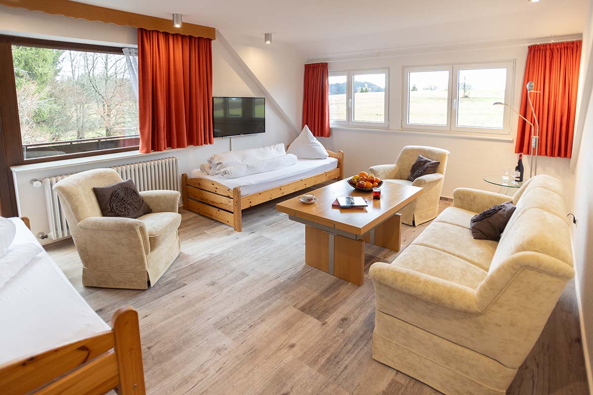 Unsere gemütlichen Zimmer sind alle mit Dusche/WC und TV ausgestattet, teilweise mit Balkon. In den Komfortdoppelzimmern haben Sie zusätzlich ein Wohnzimmer und auf Wunsch eine eigene Küche. Die jeweils individuelle Einrichtung der Zimmer kann von den folgenden Fotos abweichen – wir haben verschiedene gemütliche Varianten.